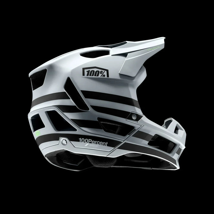 TRAJECTA El nuevo nombre para un casco de 100% con altos estándares seguridad y rendimiento funcional del todos los deporte de montaña/enduro siendo uno de los casco mas ligeros del mercado con un peso de 570 gramos.