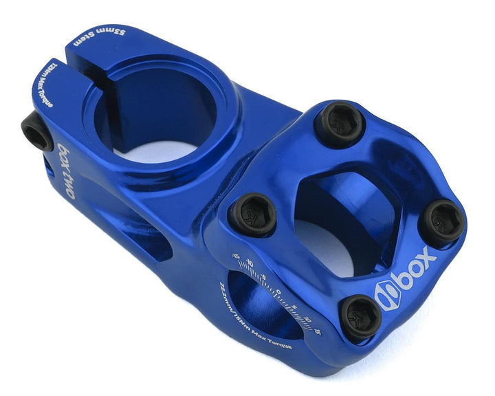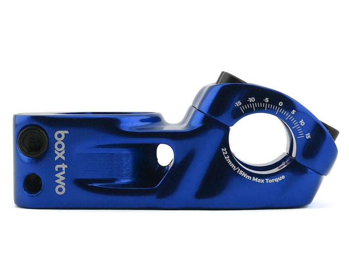 La Box Two Front Top es una potencia moderna de 1-1/8 pulgadas por 22,2 mm diseñada específicamente para las carreras de BMX. Los cuerpos de potencia Box Two Top Load están forjados en frío y mecanizados con CNC a partir de aluminio 6061-T6 de la más alta calidad. Las abrazaderas delanteras livianas están forjadas en frío y mecanizadas con CNC para aumentar la rigidez y la resistencia.