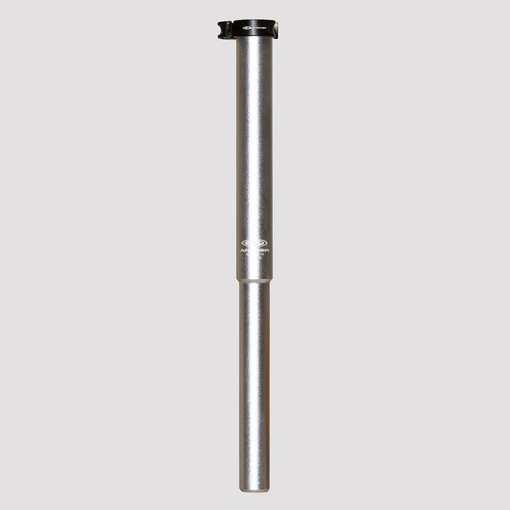 Los kits de extensores de tija de sillín ANSWER BMX están disponibles en 22,2, 26,8 y 27,2 mm con cuatro opciones de color. Los tres tamaños vienen con una abrazadera de asiento de liberación rápida, así como pernos para montar un portabidones.