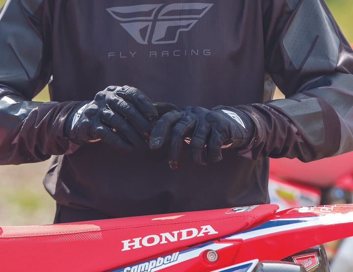Montar tiene que ver con el rendimiento; Ya seas un corredor profesional de motos de cross o un motociclista aficionado, querrás rendir al más alto nivel. Para alcanzar tu potencial, necesitas equipo de carreras de alto rendimiento. Los guantes FLY Racing Patrol XC ofrecen todas las características prácticas que necesita, como un pulgar reforzado, agarres de silicona para los dedos y un panel de palma de cuero sintético para mayor destreza y agarre. Estos guantes protectores están diseñados para carreras y paseos todoterreno. Salga y monte en su moto de cross, vehículo todo terreno, bicicleta de montaña o motocicleta. Con estos guantes podrás mantener tus manos protegidas sin sacrificar la comodidad y la movilidad. Agrégalos a tu equipo de equitación hoy para que puedas salir y explorar. Los guantes de equitación FLY Racing Patrol XC te permiten montar y explorar caminos secundarios, montañas y senderos ocultos. Ya seas un corredor de motocross profesional o un motociclista aficionado, estos guantes son una parte importante de tu equipo de conducción. Diseñados para ser tan resistentes como usted, estos guantes son duraderos, resistentes y versátiles. No se conforme con guantes baratos que sustituyen la protección por la comodidad con los guantes FLY Racing Patrol XC, puede tenerlo todo. Invertir en equipo de protección bien diseñado y de alta calidad es una de las mejores decisiones que puede tomar un ciclista. Inspirado en las carreras, impulsado por la aventura y diseñado para el rendimiento: ese es el lema que FLY Racing lleva a cada pieza de equipo, indumentaria y accesorio deportivo. FLY Racing ha trabajado para ofrecerle lo mejor en equipo desde 1998.