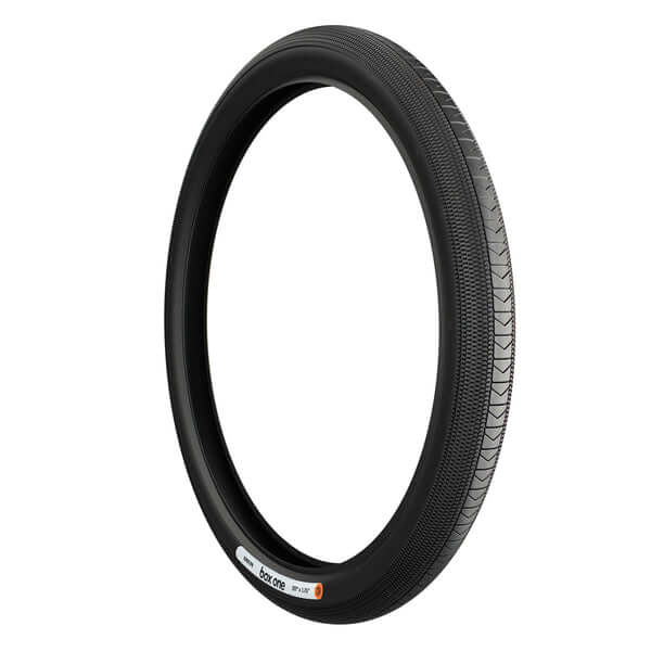 Los llantas plegables Box One™ 120 TPI fueron diseñados con un enfoque minimalista para alcanzar objetivos elevados, tracción, resistencia a la rodadura y rebote. En su corazón hay una carcasa súper flexible de 120TPI en la que forzamos la mayor cantidad posible de caucho desplazando al nailon. Se emplean paredes de piel para reducir la resistencia y reducir aún más el peso. Flanqueamos la carcasa de alta densidad con un aro apretado de fibras de aramida. Finalmente, cubrimos todo esto con una banda de rodadura específica para carreras de BMX que pasa de una banda central con una gran zona de contacto a protuberancias táctiles unidireccionales en los costados. Esta combinación agresiva permite una máxima tracción desde la puerta, una inmensa adherencia en las curvas y una baja resistencia a la rodadura en las rectas. Se utiliza una mezcla de compuestos de última generación en varias áreas del ápice, la pared, el asiento del talón y el centro, con un mayor contenido de sílice en la banda de rodamiento para nuevamente eliminar peso.