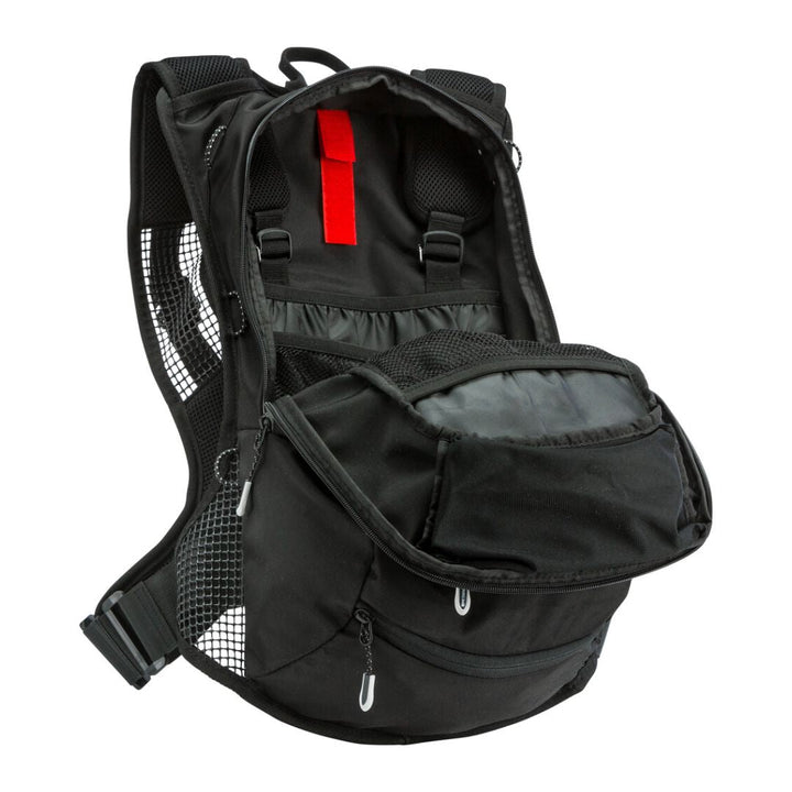 - Sistema de arnés de pecho con bandas elásticas de velcro para mayor flexibilidad. Malla exterior plegable para llevar todo el bolsillo frontal para accesorios más pequeños