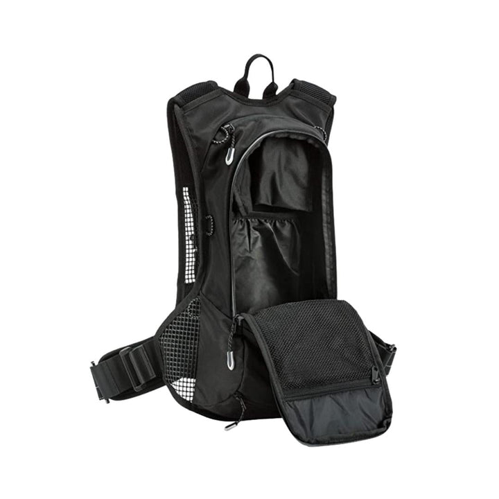 - Sistema de arnés de pecho con bandas elásticas de velcro para mayor flexibilidad. Malla exterior plegable para llevar todo el bolsillo frontal para accesorios más pequeños
