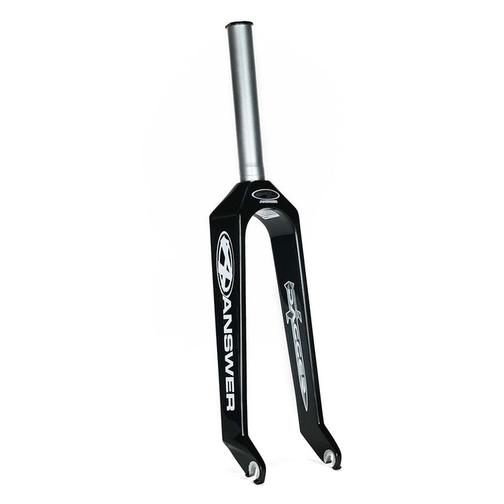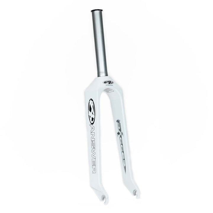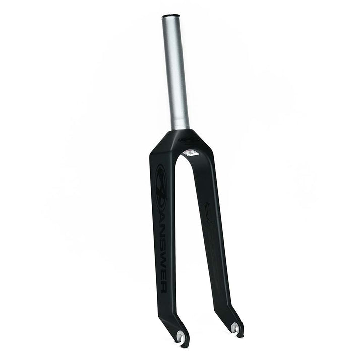 La horquilla de carrera Answer Dagger es una horquilla de carrera liviana hecha de un tejido de fibra de carbono de 4K hilos con un tubo de dirección y corona de aluminio serie 7000 de 1 pieza, punteras de aluminio serie 7000 con ranuras de eje de 3/8 ″ y un dispositivo de compresión incorporado.